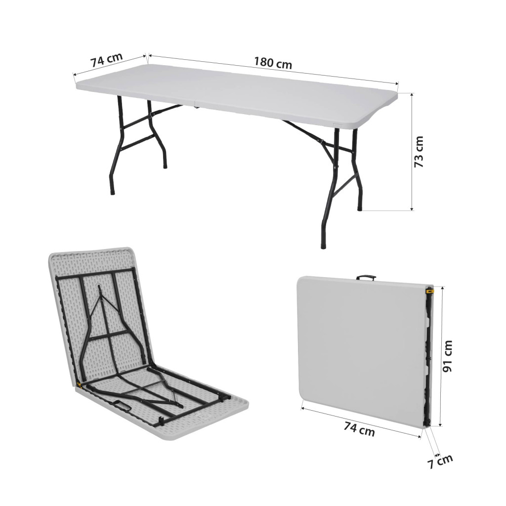 Jednou z hlavných predností modelu NC1618 je jeho robustná a premyslená konštrukcia. Horná doska je vyrobená z odolného PVC s hladkým povrchom, ktorý nielen dobre vyzerá, ale je tiež odolný voči škvrnám, ľahko sa čistí a odoláva poveternostným vplyvom. Zosilnený oceľový rám zaisťuje stabilitu stola aj pri väčšom zaťažení. Maximálna nosnosť až 50 kg umožňuje stôl bezpečne používať pri servírovaní jedla, ukladaní riadu alebo rozostavení vybavenia na akciách.