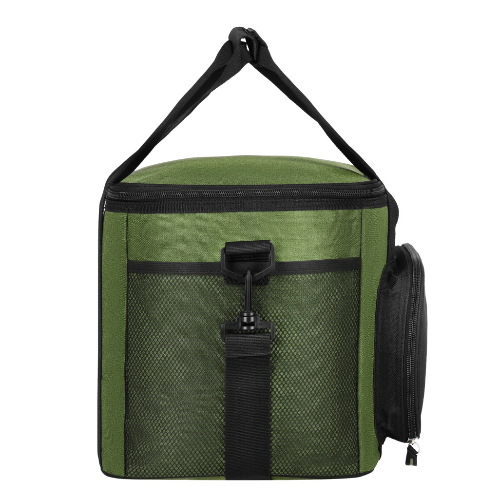 Hlavný priestor tašky je zakončený odolnou a pre potraviny bezpečnou vrstvou PEVA, ktorá účinne izoluje vnútorný priestor a udržuje správnu teplotu uložených produktov. Ďalšia vrstva PE zvyšuje izolačnú účinnosť, zatiaľ čo odolný vonkajší materiál - polyester 600D - chráni obsah pred vlhkosťou a mechanickým poškodením. Vďaka tomu sa taška osvedčí bez ohľadu na počasie a ročné obdobie.