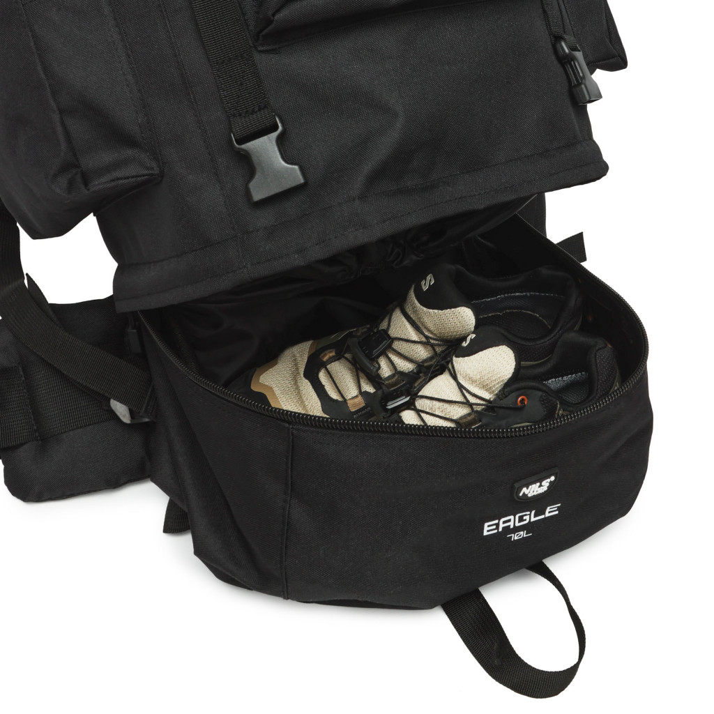 Armádny batoh NC3901 Eagle od spoločnosti NILS Camp je voľbou pre každého, kto si cení spoľahlivosť, funkčnosť a pripravenosť do akýchkoľvek podmienok. S úctyhodným objemom 70 litrov sa do neho ľahko zmestí všetko vybavenie potrebné počas niekoľkodňovej expedície - od oblečenia a jedla až po stan a karimatku. Je ideálnou voľbou pre milovníkov trekkingu, bushcraftu a survivalu, rovnako ako pre tých, ktorí sa chystajú na expedície v náročnom horskom alebo lesnom teréne.
