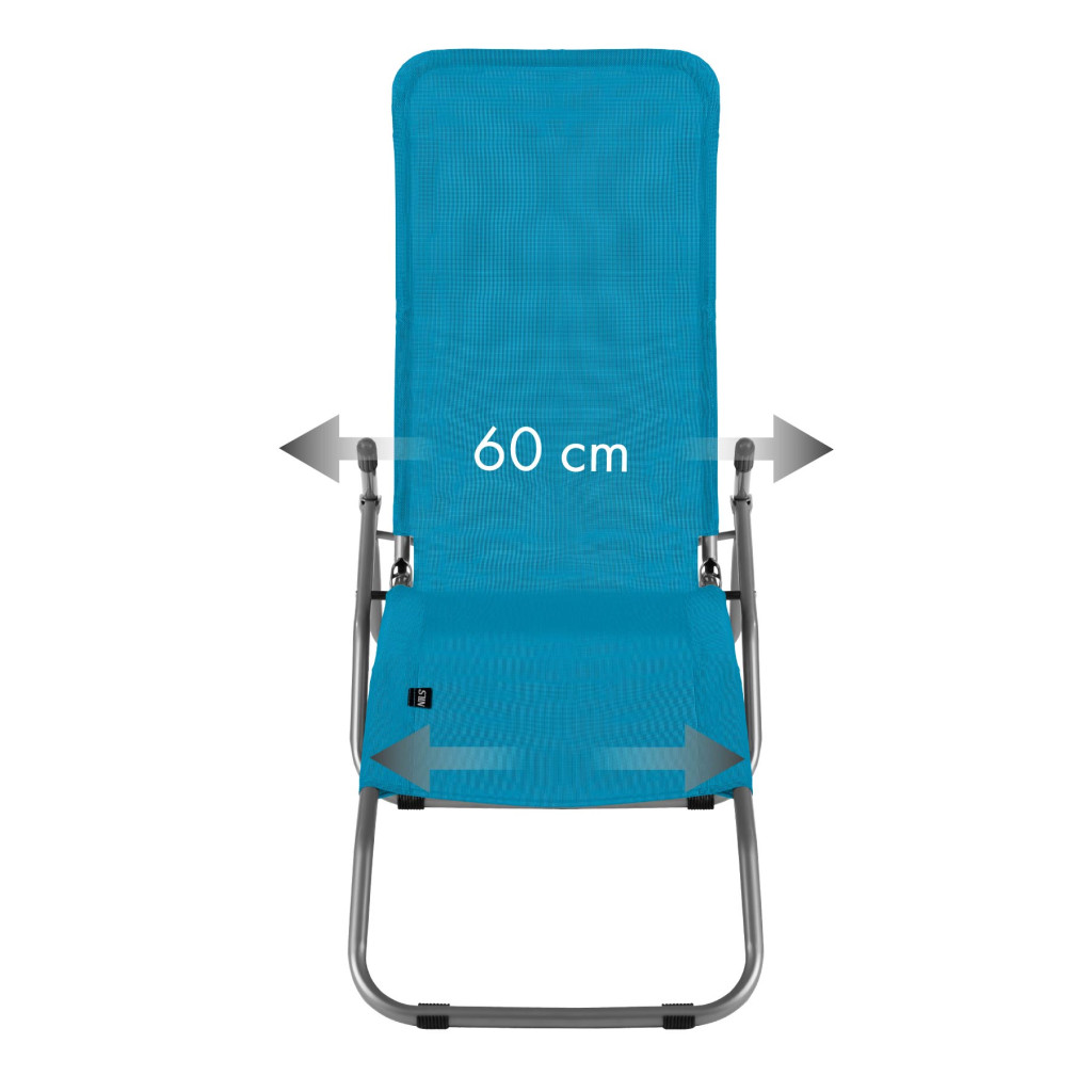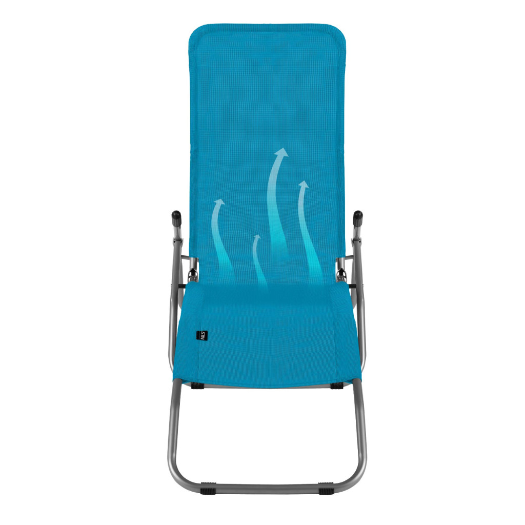 Lehátko NC3017 má priedušnú štruktúru materiálu, ktorá zabezpečuje voľný prietok vzduchu a zvyšuje tak komfort používania v horúcich dňoch. Vďaka plynulej zmene sklonu môže používateľ meniť polohu zo sediacej na ležiacu pomocou vyváženia ťažiska, bez potreby ďalších mechanizmov. Zadná opora zároveň zabraňuje nadmernému zakloneniu.