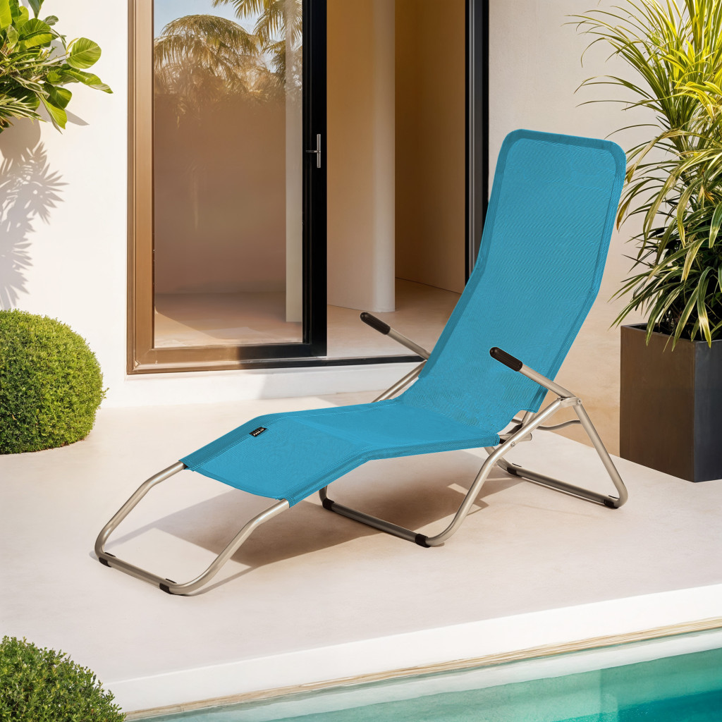 Ide o univerzálne lehátko, ktoré sa osvedčí za každých podmienok. Za jeho stabilitu ručia oceľové profily s priemerom 24 mm. Vďaka pevnej konštrukcii a materiálu textilen (polyesterové vlákno potiahnuté vinylom), ktorý je veľmi odolný, je maximálna nosnosť lehátka až 100 kg. Súčasťou sú aj protišmykové nožičky, ktoré zabraňujú posúvaniu.