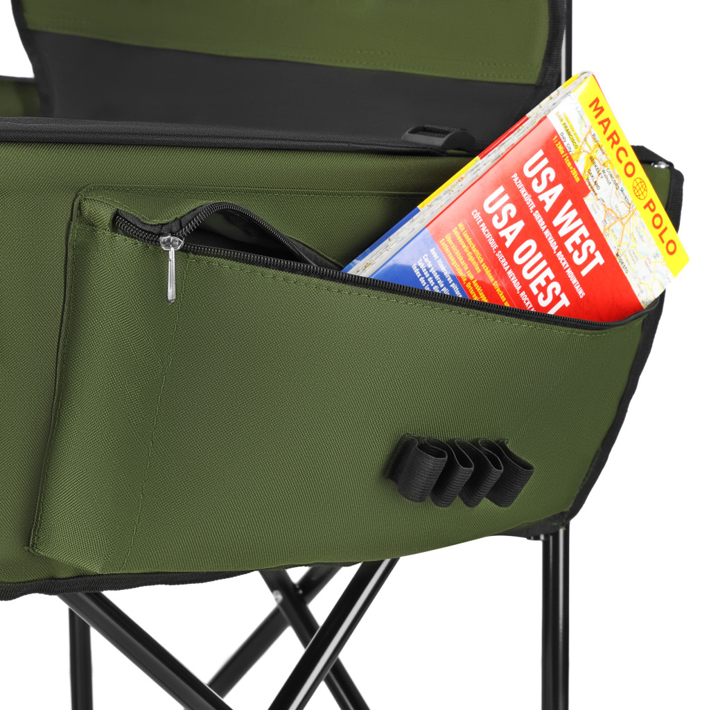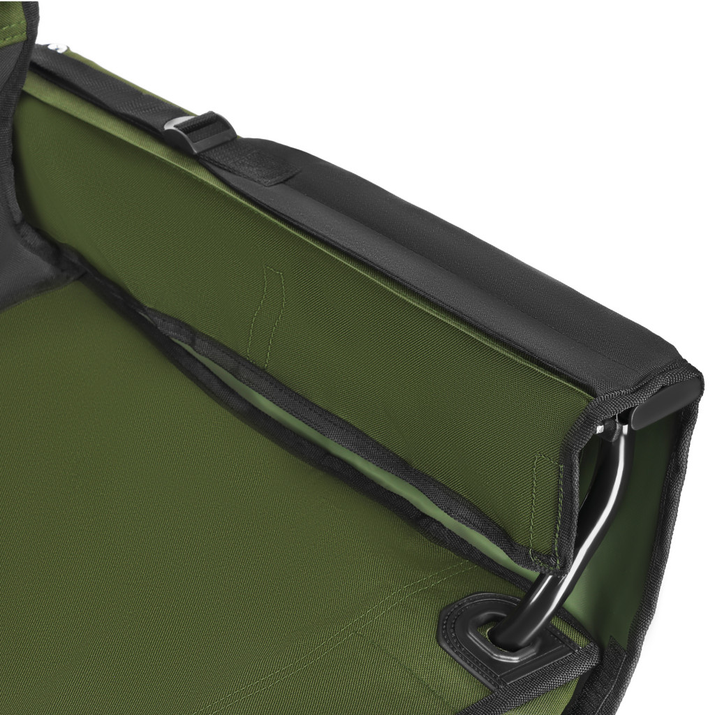 Vstavané bočné vrecká umožňujú uloženie drobných predmetov, ako sú nápoje, turistické doplnky alebo občerstvenie, ktoré sú tak vždy po ruke. Na zadnej strane operadla je natlačená stupnica o dĺžke 15 palcov.