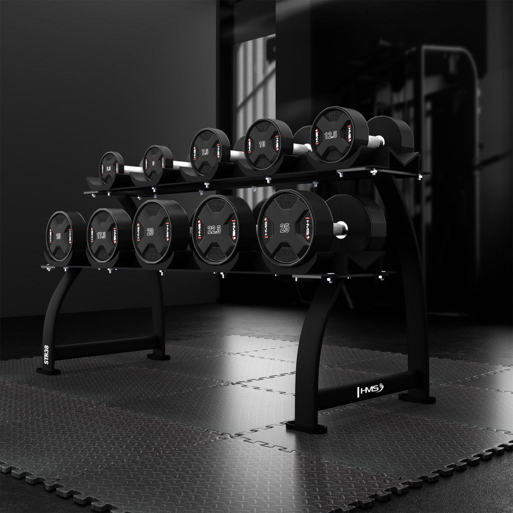 Jednoručné činky HMS HPC sú vyrobené z oceľového jadra potiahnutého liatym polyuretánom (CPU). HPC sú vybavenie vytvorené s ohľadom na najnáročnejších používateľov. Výnimočná odolnosť, estetické prevedenie a pokročilé vlastnosti z nich robia ideálnu voľbu pre tých, ktorí očakávajú spoľahlivosť počas intenzívnych tréningov.