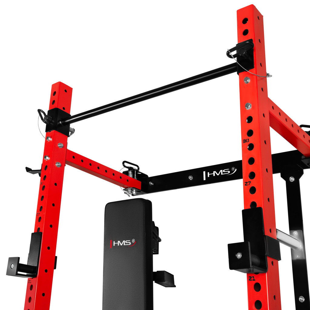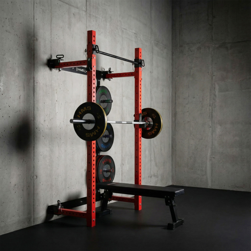 Power Rack KLT34 HMS Fitness je navrhnutý špeciálne pre domáce posilňovne, kde zohráva kľúčovú úlohu úspora priestoru, vysoká funkčnosť a bezpečnosť. Vďaka skladaniu rámov k sebe nevyžaduje vysoký strop, a je teda ideálny do bytov, pivníc aj garáží.