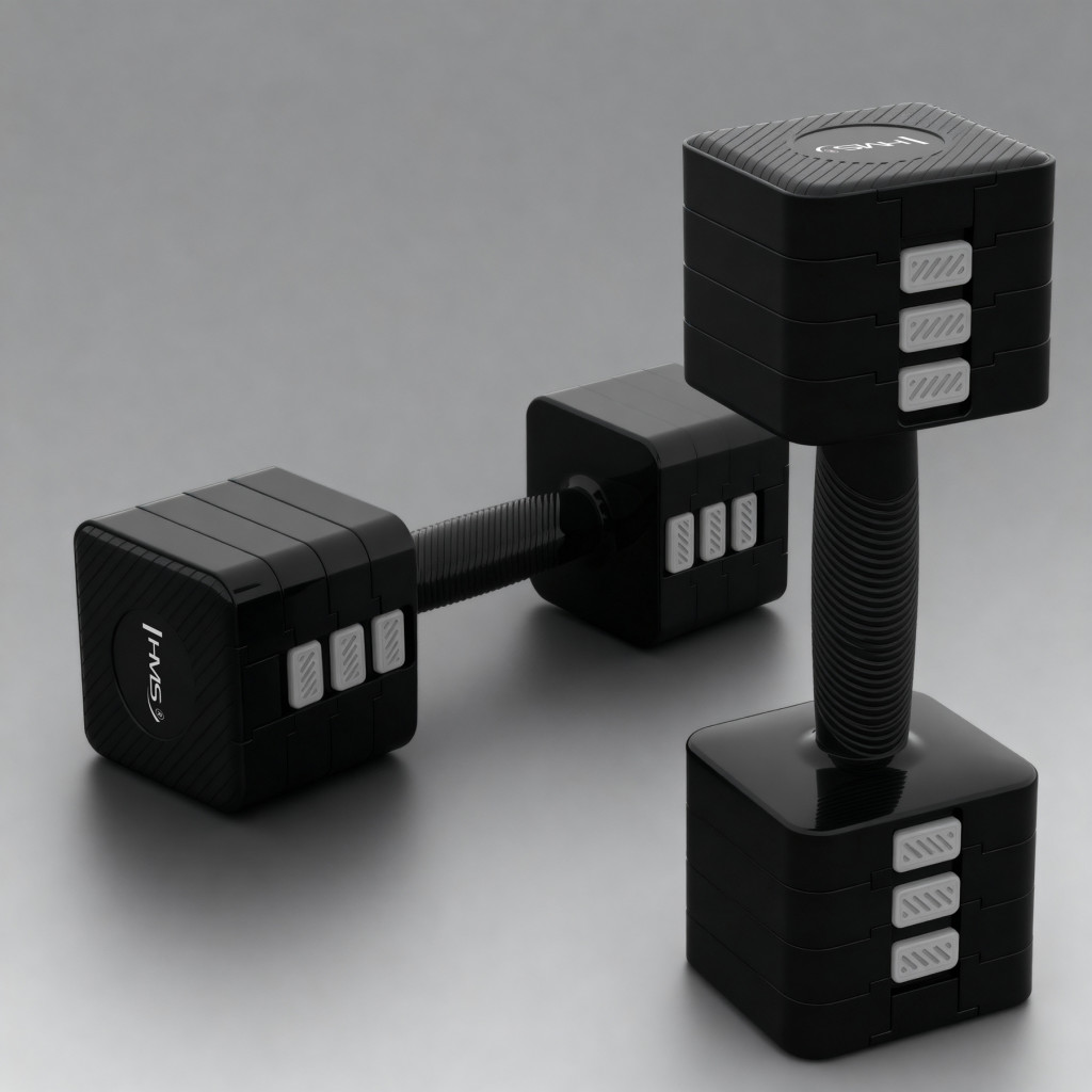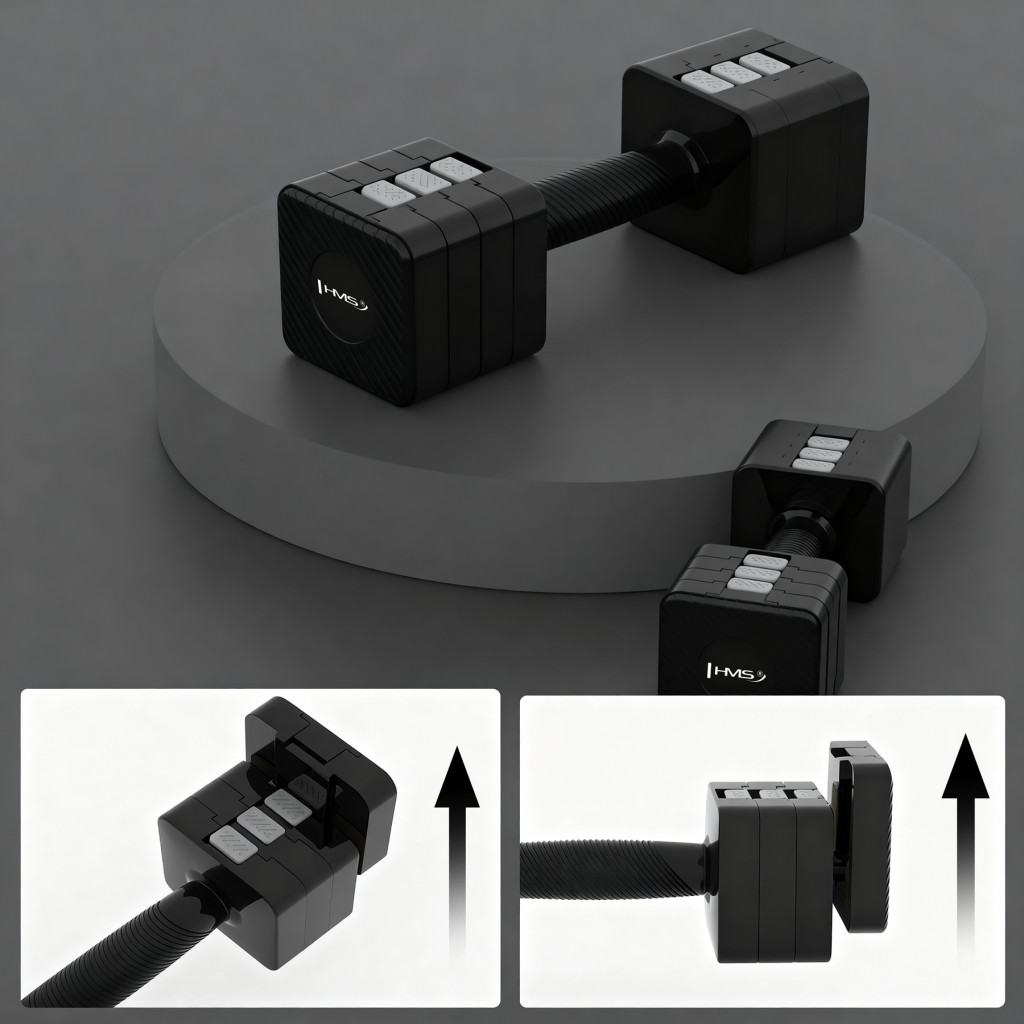 Rozhýb svoj fitness tréning s HL02 HMS – to sú nastaviteľné činky 2 × 5 kg s bleskurýchlou, niekoľkosekundovou zmenou hmotnosti, protišmykovou rukoväťou a stabilným štvorcovým tvarom. Jedna sada nahradí päť párov klasických činiek – ušetríš miesto, čas aj peniaze.