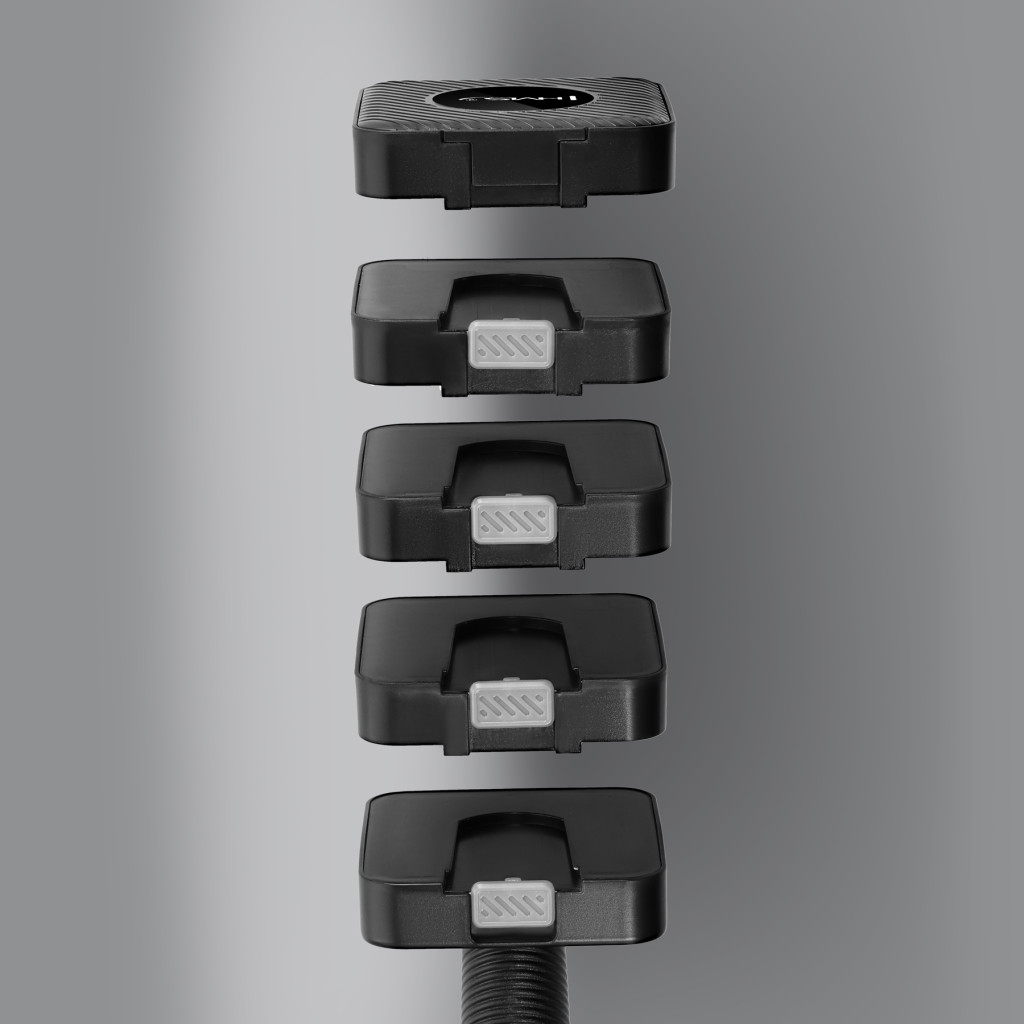 Ergonomická rukoväť s protišmykovou textúrou, pevný ABS plášť a uzamykací mechanizmus segmentov zaručujú istý úchop a bezpečné používanie. Štvorcové závažie zvyšujú stabilitu pri odkladaní činiek i pri použití činiek ako stojany.