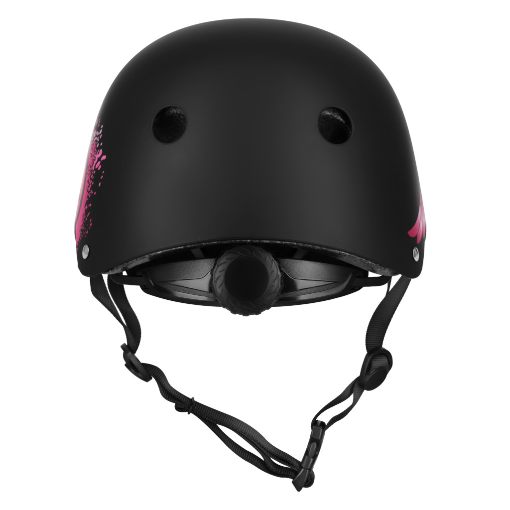 NILS Extreme MTW001 FLY je kvalitná prilba typu „orech“, navrhnutá pre bezpečnú jazdu na kolieskových korčuliach, skateboarde a kolobežke. Moderný čierny matný dizajn so symbolom krídiel dodáva prilbe štýlový vzhľad.