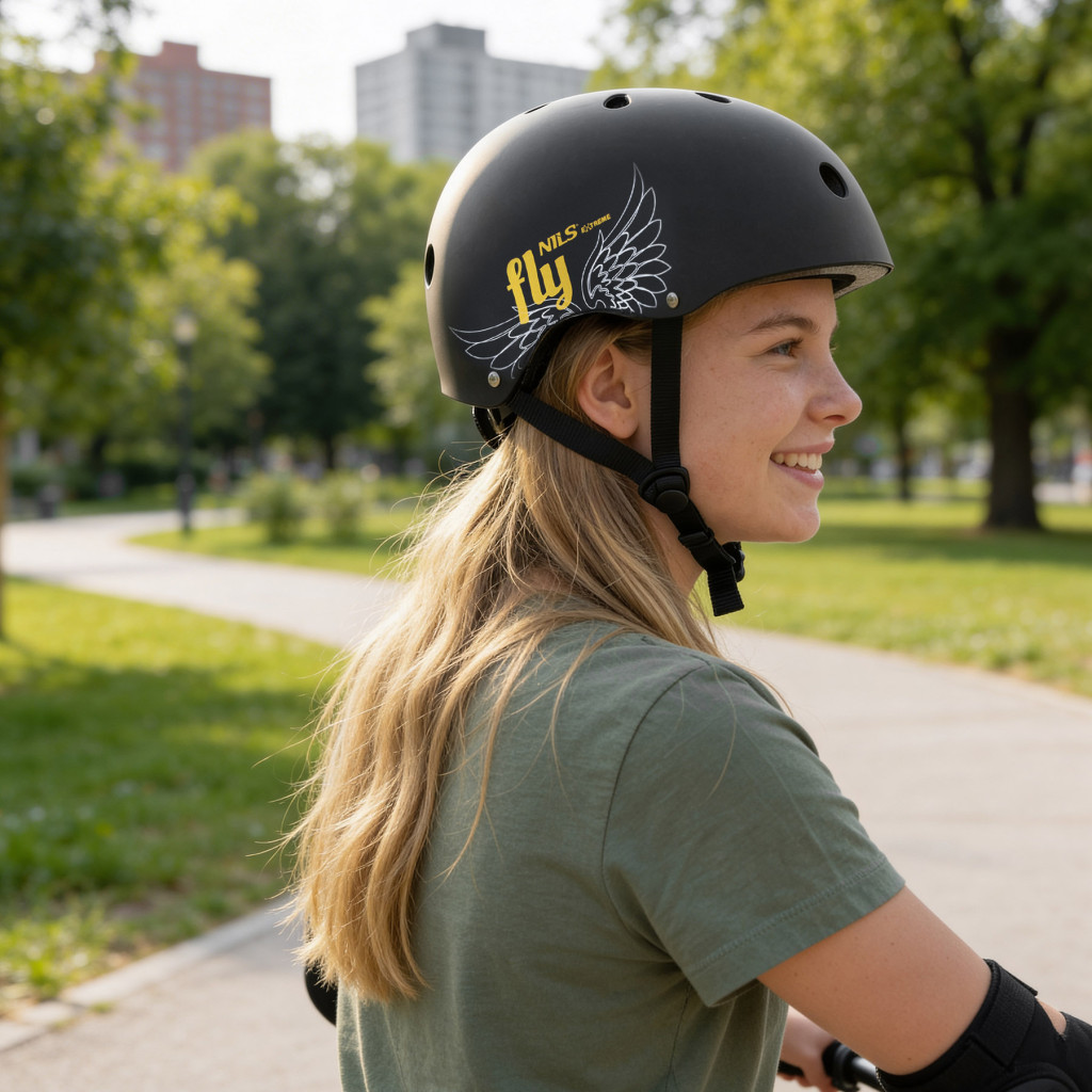 NILS Extreme MTW001 FLY je kvalitná prilba typu „orech“, navrhnutá pre bezpečnú jazdu na kolieskových korčuliach, skateboarde a kolobežke. Moderný čierny matný dizajn so symbolom krídel dodáva prilbe štýlový vzhľad.