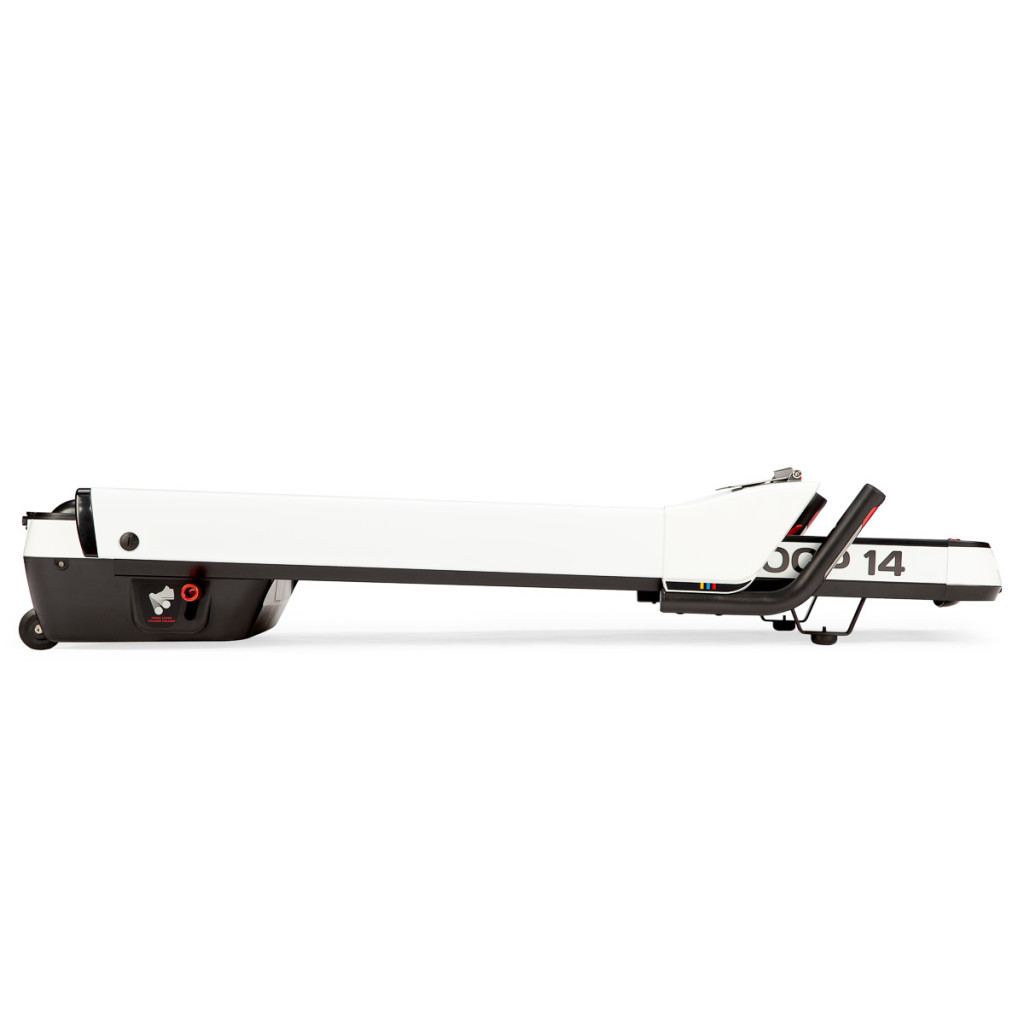 Trenažér je vybavený motorom s výkonom 2,5 HP, ktorý dokáže rozhýbať bežecký pás na maximálnu rýchlosť 14 km/h. LOOP14 tiež disponuje automatickou reguláciou sklonu v rozsahu 0 - 12° pre simuláciu behu v teréne. Bežecká plocha s rozmermi 130 x 48 cm je na 6 miestach odpružená pomocou silikagelových silentblokov, ktoré znižujú namáhanie kĺbov pri behu. Konzolu je možné pomocou nášlapnej poistky ľahko zložiť k zadnej hrane trenažéra a po sklopení dosiahneme rozmer 146 x 75 x 27 cm, takže trenažér sa zmestí za skriňu alebo pod posteľ. Presúvanie modelu LOOP14 navyše uľahčujú 2 páry koliesok. Prvý pár sa nachádza na spodnej hrane a po zodvihnutí zadnej časti pásu umožňujú pohyb dopredu a dozadu. Druhý pár koliesok sa nachádza na čele trenažéra a po jeho zodvihnutí do kolmej polohy umožňujú pohyb do strán.